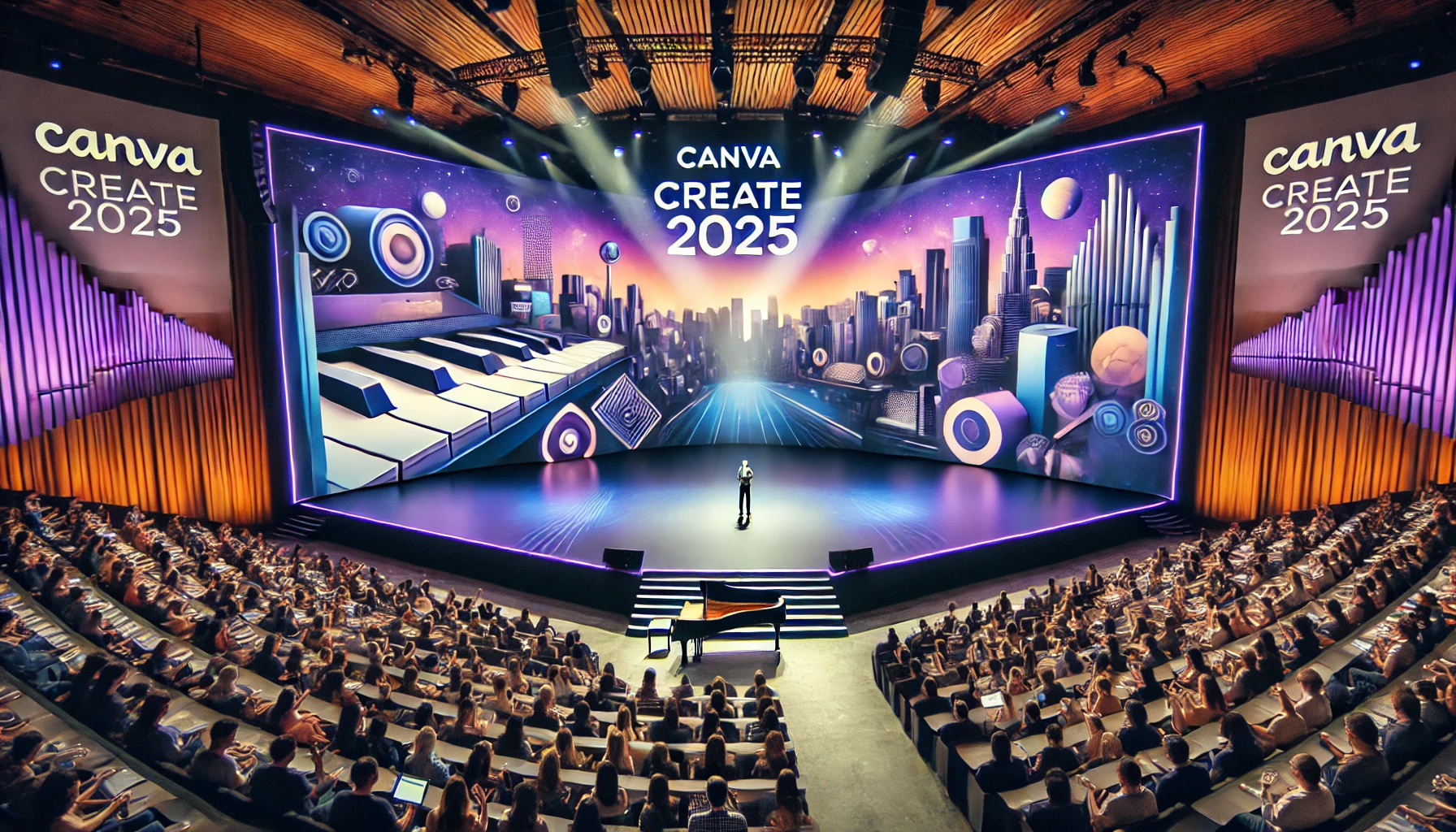 2025년 4월, 미국 LA 할리우드 파크에서 열린 'Canva Create 2025: Uncharted'는 캔바의 역대 최대 규모의 제품 발표 행사였습니다. '미지의 영역을 열다'라는 테마 아래, 전 세계의 크리에이터, 팀 리더, 교육자, 혁신가들이 참석하여 캔바의 새로운 비전을 공유했습니다. 행사에서는 존 바티스트의 피아노 연주와 시네마틱한 영상미, 연극 같은 프레젠테이션이 어우러져 참가자들의 이목을 끌었습니다.