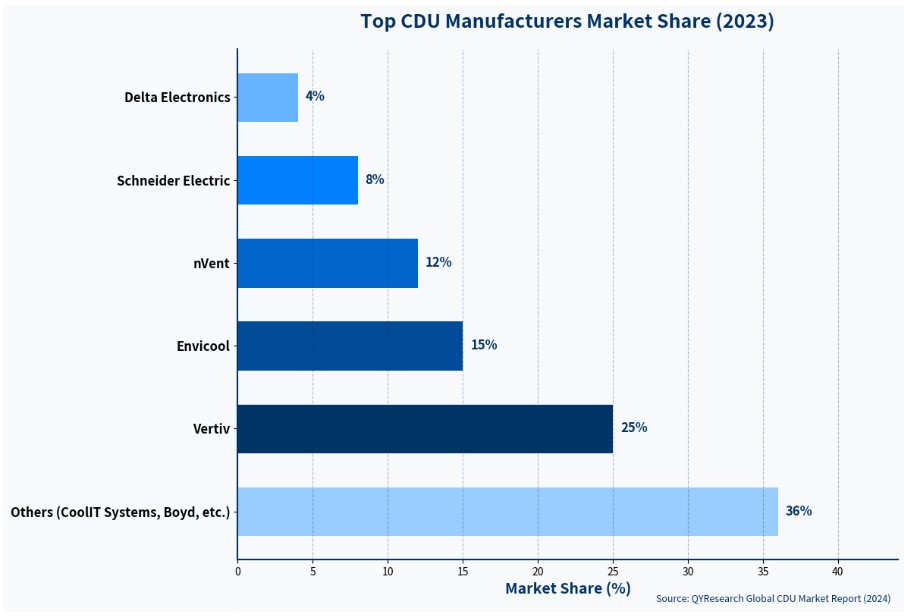 1) Vertiv (25%): 업계 선두주자로 광범위한 CDU 제품 포트폴리오 보유